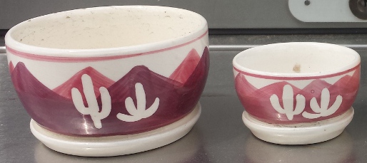 The bigger of the two. 3.5 inch wide pot with a Cactus Scene.